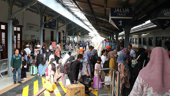 Tingginya mobilitas masyarakat yang kembali ke kota asal maupun tempat kerja menjadikan stasiun-stasiun di wilayah KAI Daop 9 Jember dipadati penumpang..